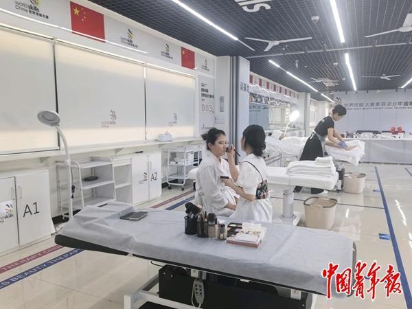 重慶城市管理職業(yè)學(xué)院展示其世界技能大賽美容項(xiàng)目中國(guó)集訓(xùn)基地。 中青報(bào)·中青網(wǎng)記者 張渺/攝