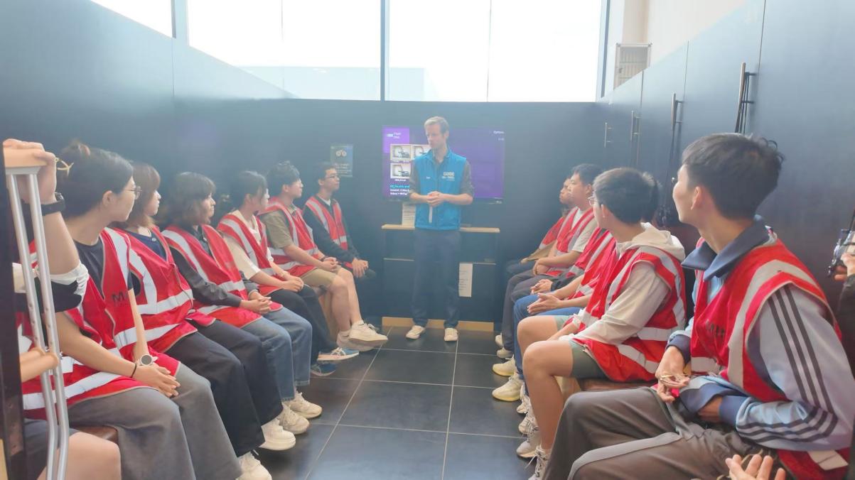 在牛津?qū)汃RMINI工廠,同學(xué)們見識了現(xiàn)代智能制造的精密與高效。作為MINI品牌全球核心生產(chǎn)基地,這里以高度自動化著稱。師生分組觀摩整車裝配線與白車身制造車間,深入了解工業(yè)機器人協(xié)同作業(yè)、模塊化裝配等先進技術(shù),尤其對數(shù)千零部件的高精度集成過程印象深刻,深刻體會到跨學(xué)科技術(shù)在產(chǎn)業(yè)中的融合應(yīng)用。