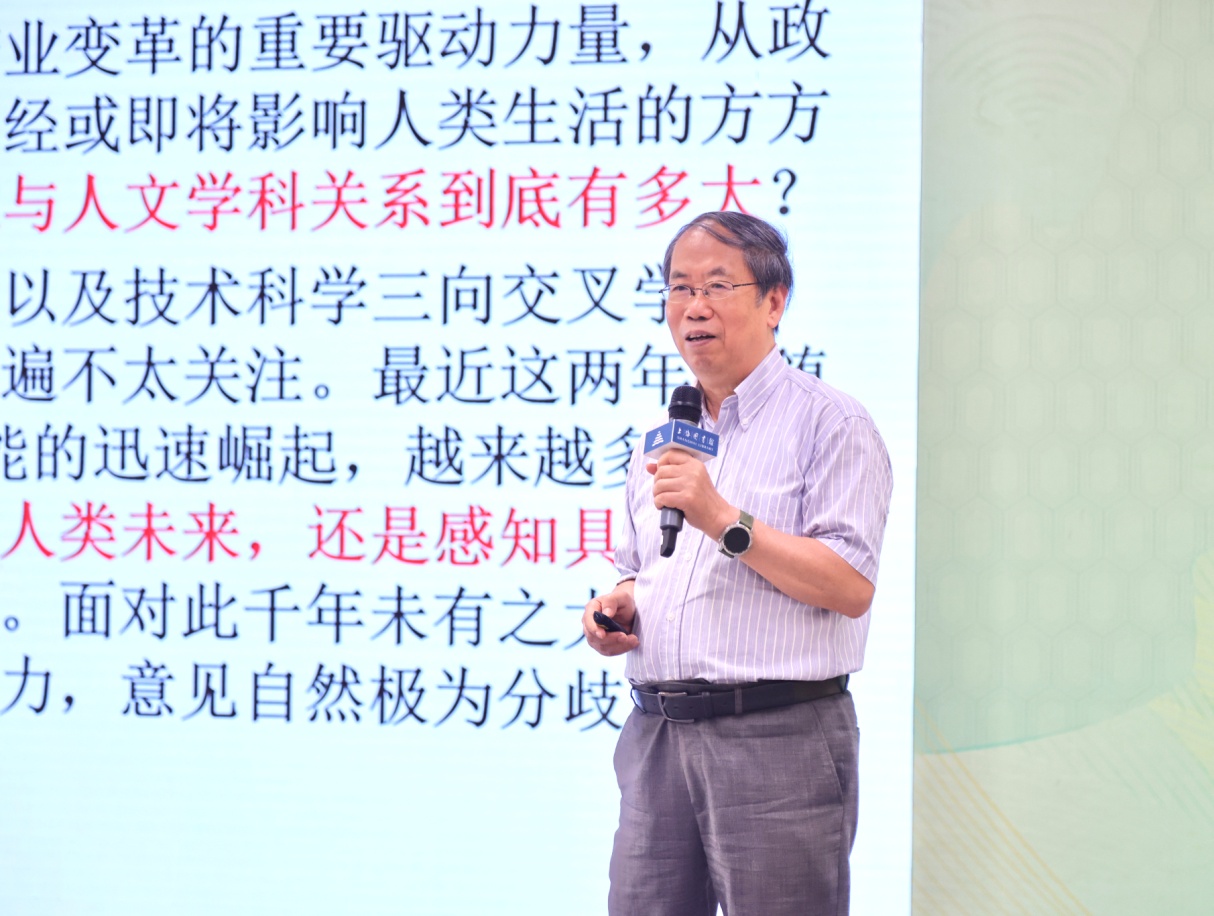 在分享中,陳平原回顧了自己25年來對科技與人文學(xué)關(guān)系的思考歷程。從2000年發(fā)表《數(shù)碼時代的人文研究》,到今年元旦在《光明日報》發(fā)表《人文學(xué)科要做好迎接人工智能挑戰(zhàn)的準備》,再到春節(jié)期間因DeepSeek的問世而展開深入思考,他坦言AI的沖擊讓他“心驚膽戰(zhàn)”。在“人文學(xué)者如何與AI共舞”這一話題中,陳平原提出了四點思考:首先,未來十年將是AI沖擊人文學(xué)的振蕩期,但如同百年前索引技術(shù)和數(shù)碼技術(shù)的引入,最終人們會適應(yīng)并找到平衡;其次,與AI共舞需要在承認危機、適應(yīng)變化的同時,堅守人文精神和人類尊嚴;再次,人文學(xué)者不必全部擁抱AI,允許“抵抗”的聲音存在,以揭示潛在陷阱;最后,人文學(xué)與科技并非對立,語言學(xué)與邏輯學(xué)已深度融入AI理論,未來人文學(xué)者可通過跨學(xué)科合作抓住機遇。