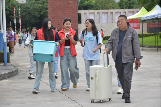 迎新現(xiàn)場,校黨委書記楊國良、黨委副書記段家開、副校長李亞林和楊春華等領(lǐng)導(dǎo)到場指導(dǎo)迎新工作,細(xì)致詢問新生報(bào)到情況,并與學(xué)生和家長親切交流。各部門協(xié)同聯(lián)動(dòng)、緊密配合,現(xiàn)場秩序井然。教職工和黨員先鋒隊(duì)堅(jiān)守崗位,為新生提供暖心的全流程引導(dǎo)和服務(wù);行健駕校的車輛往返于校園道路,為新生和家長提供便利;保安們面帶笑容,歡迎剛踏進(jìn)校門的新生們,并為他們提供必要的服務(wù)。