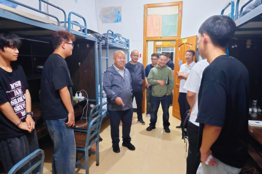 晚上,楊國良書記帶隊(duì)走進(jìn)新生宿舍,與新同學(xué)親切交流,傾聽入學(xué)感受,及時(shí)解決遇到的困難與問題,耐心為同學(xué)們答疑解惑。