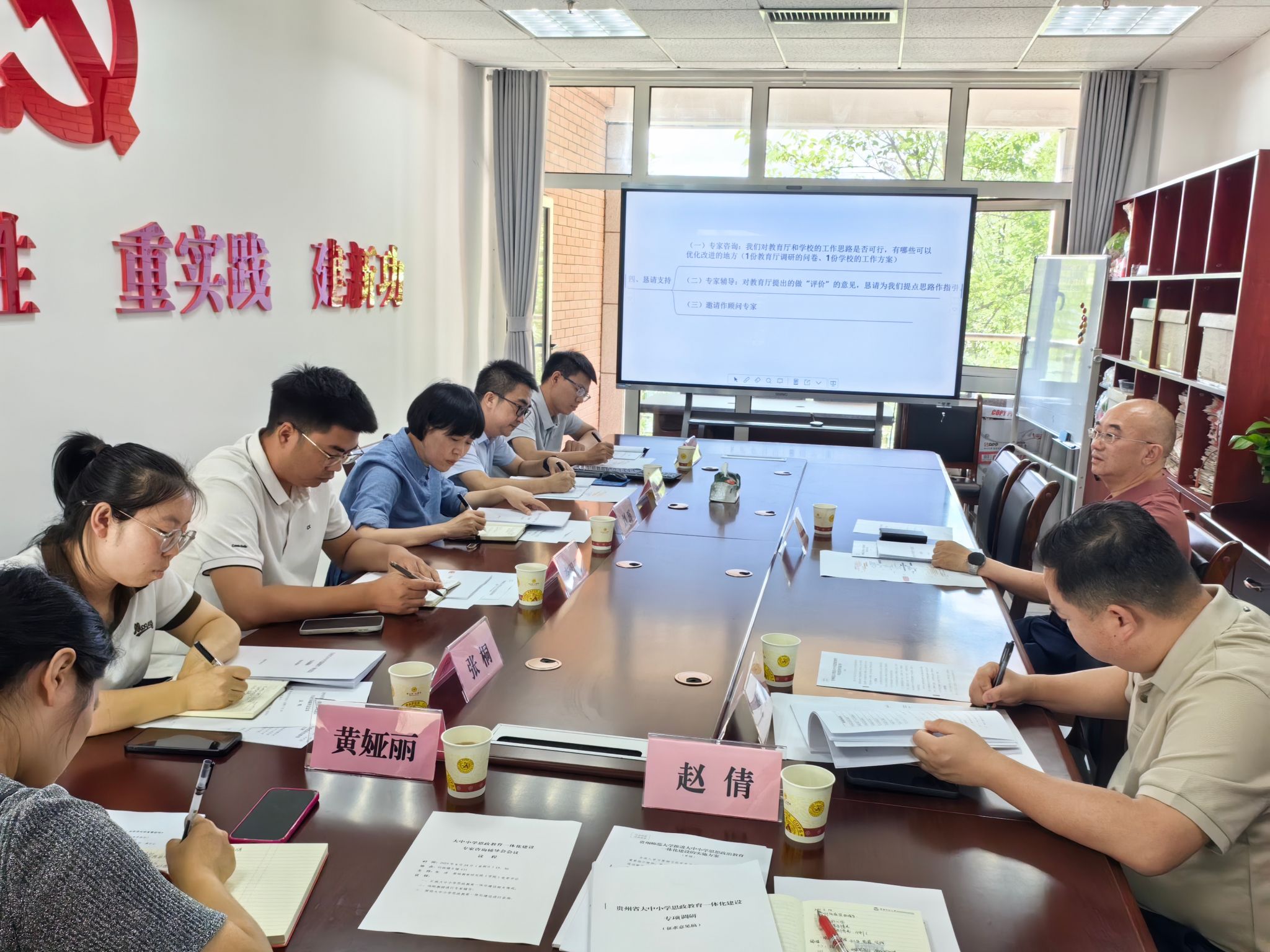 馮剛教授聽取了基礎(chǔ)教育研究院(基礎(chǔ)教育學(xué)院)關(guān)于學(xué)校大中小學(xué)思想政治教育一體化建設(shè)的工作匯報,并從大中小學(xué)思想政治教育實證調(diào)研設(shè)計、整體框架構(gòu)建、家校社縱橫交融建構(gòu)等三方面進(jìn)行輔導(dǎo)。他指出,當(dāng)前我國正處于教育強國建設(shè)的關(guān)鍵時期,加強和改進(jìn)學(xué)校思想政治工作,推動大中小學(xué)思想政治教育一體化建設(shè),是新時代賦予高校的重要使命。他強調(diào),一體化建設(shè)要把握好專項調(diào)研的核心定位,找準(zhǔn)大中小學(xué)思想政治教育一體化建設(shè)的破題點;整體框架構(gòu)建要結(jié)合學(xué)校實際,充分發(fā)揮貴師大特色優(yōu)勢,從實踐中進(jìn)一步作提升性、延展性研究。