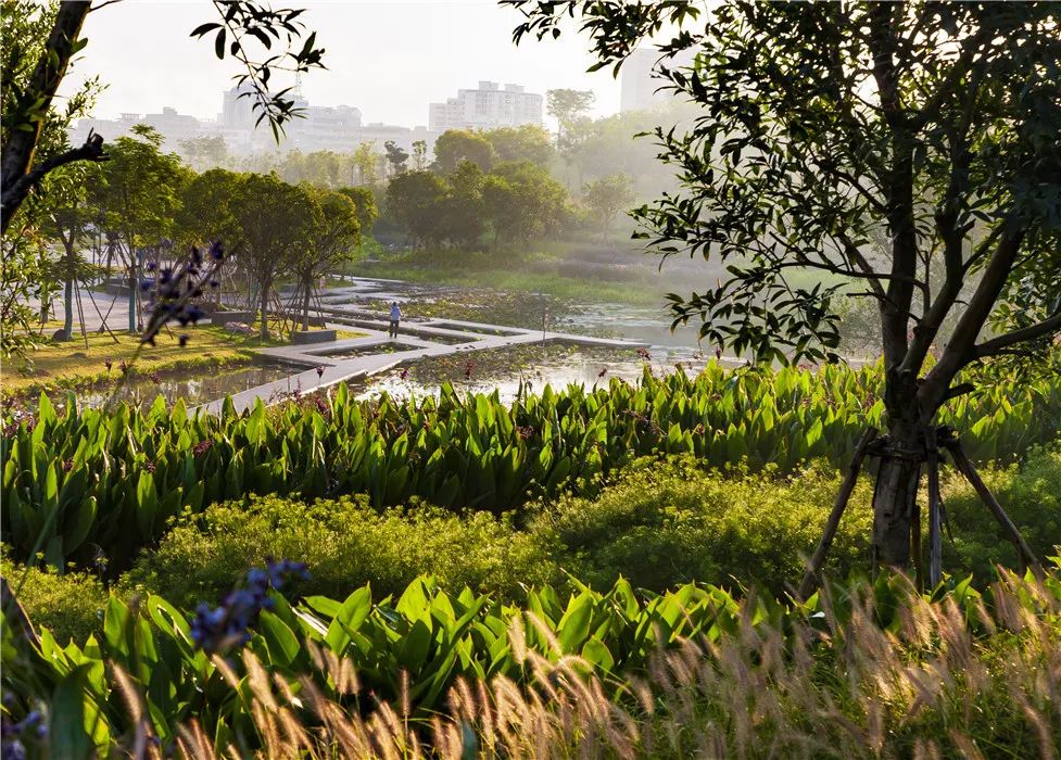 借助綠色海綿技術(shù)和加強(qiáng)型人工濕地系統(tǒng)的建立,設(shè)計最終讓場地中的水流及營養(yǎng)流慢了下來,修復(fù)了動植物棲息地,提升了生物多樣性;多樣化慢行系統(tǒng)的引入鼓勵了市民及游客的綠色出行,為城市打造了一個全新的旅游、休憩、文化勝地。更為重要的是,在全球日益嚴(yán)峻的水污染和水資源短缺等問題下,項(xiàng)目采用的設(shè)計方法在城市水質(zhì)治理、防洪以及創(chuàng)造社會文化服務(wù)空間等方面具有重要借鑒意義。